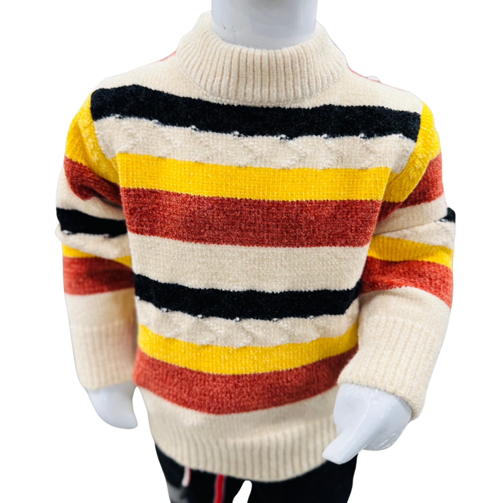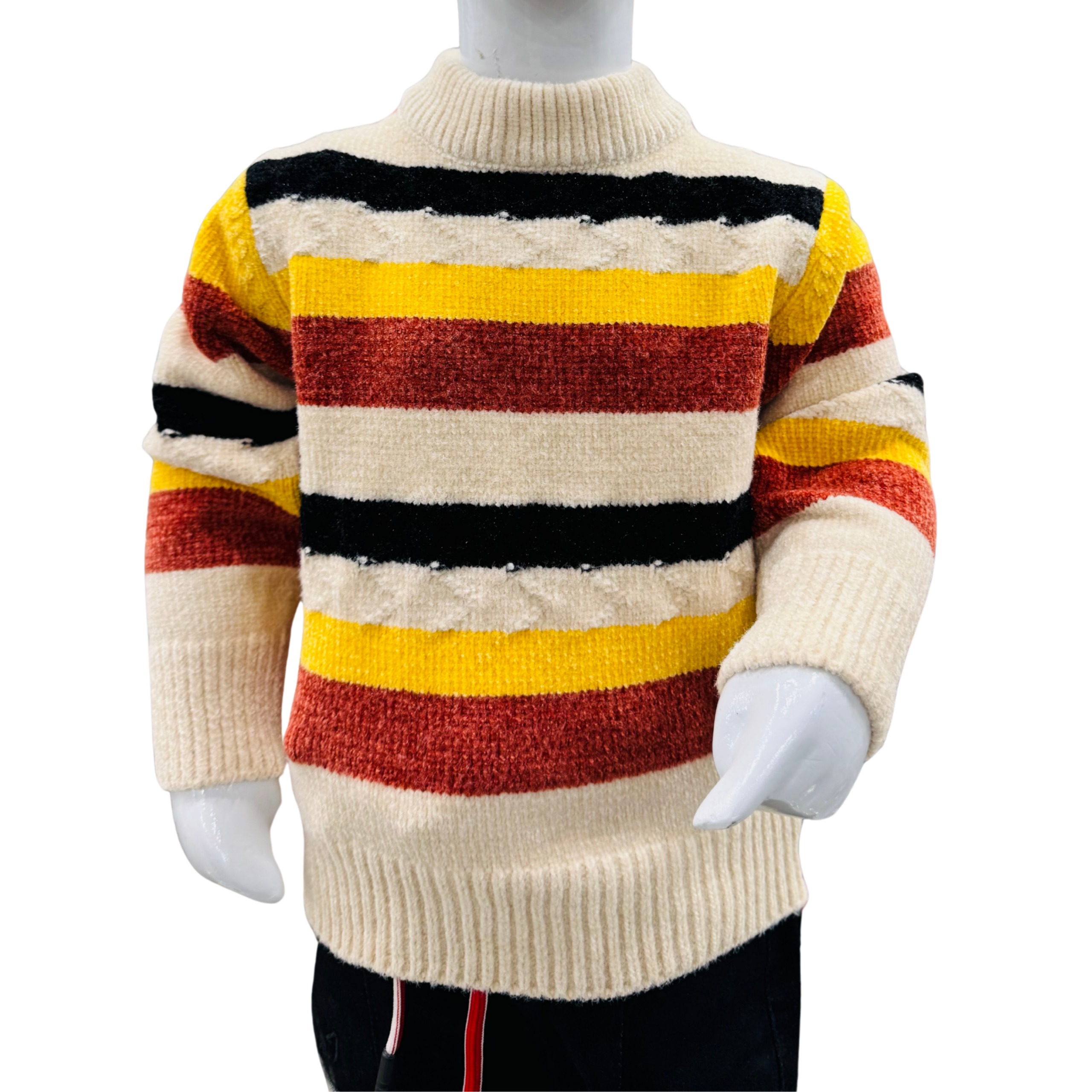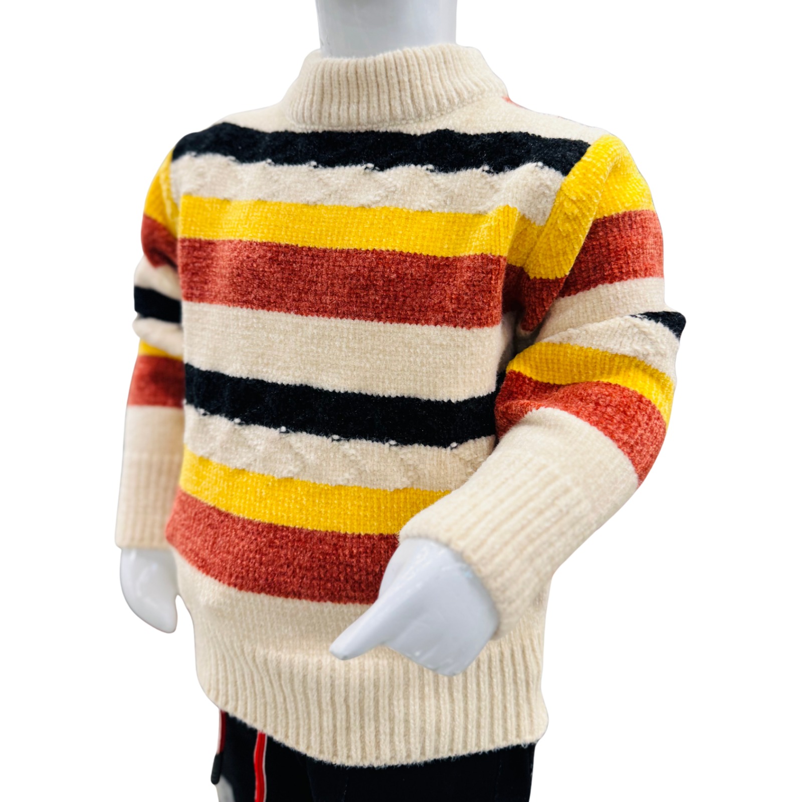 Keep your little one warm and fashionable during the cold season with our Boys Multicolor Striped Winter Knit Sweater & Trouser Set.