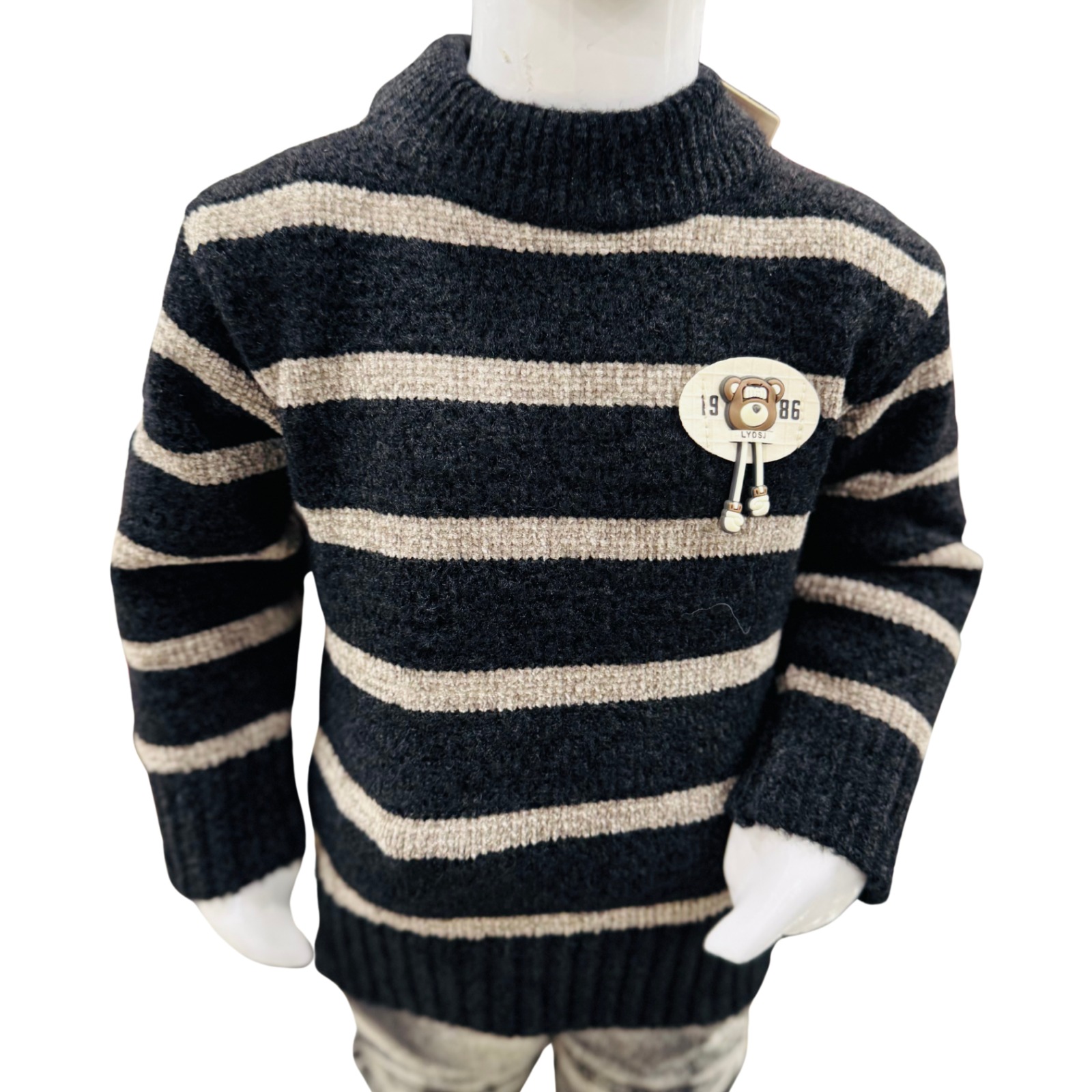 Keep your little boy warm and fashionable this winter with our Boys Striped Knitted Sweater & Denim Jeans Set.