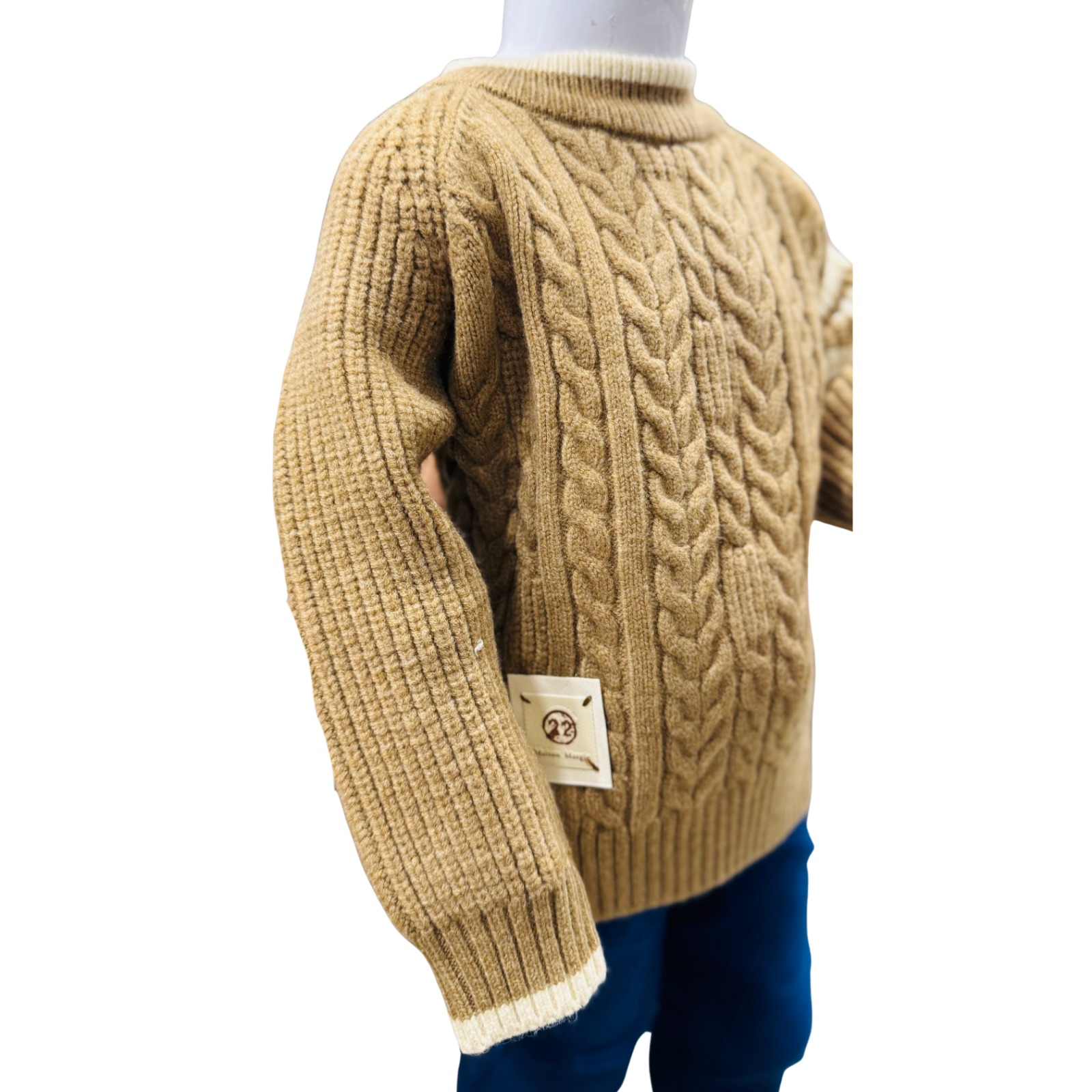 The premium-quality knitted sweater features a classic cable knit design that gives a trendy yet timeless winter look. Paired with soft, comfortable trousers, this outfit ensures warmth, flexibility, and ease of movement for active kids.