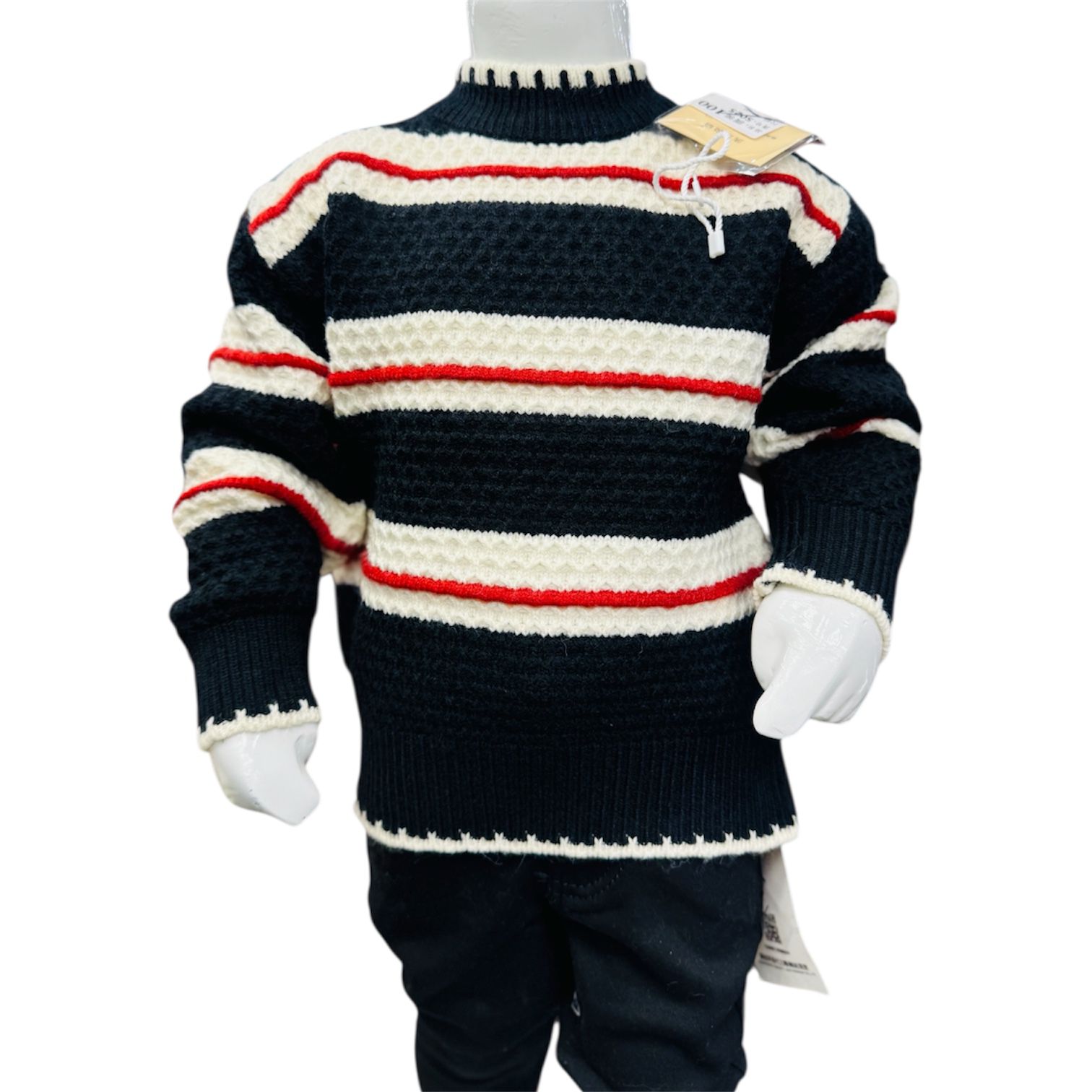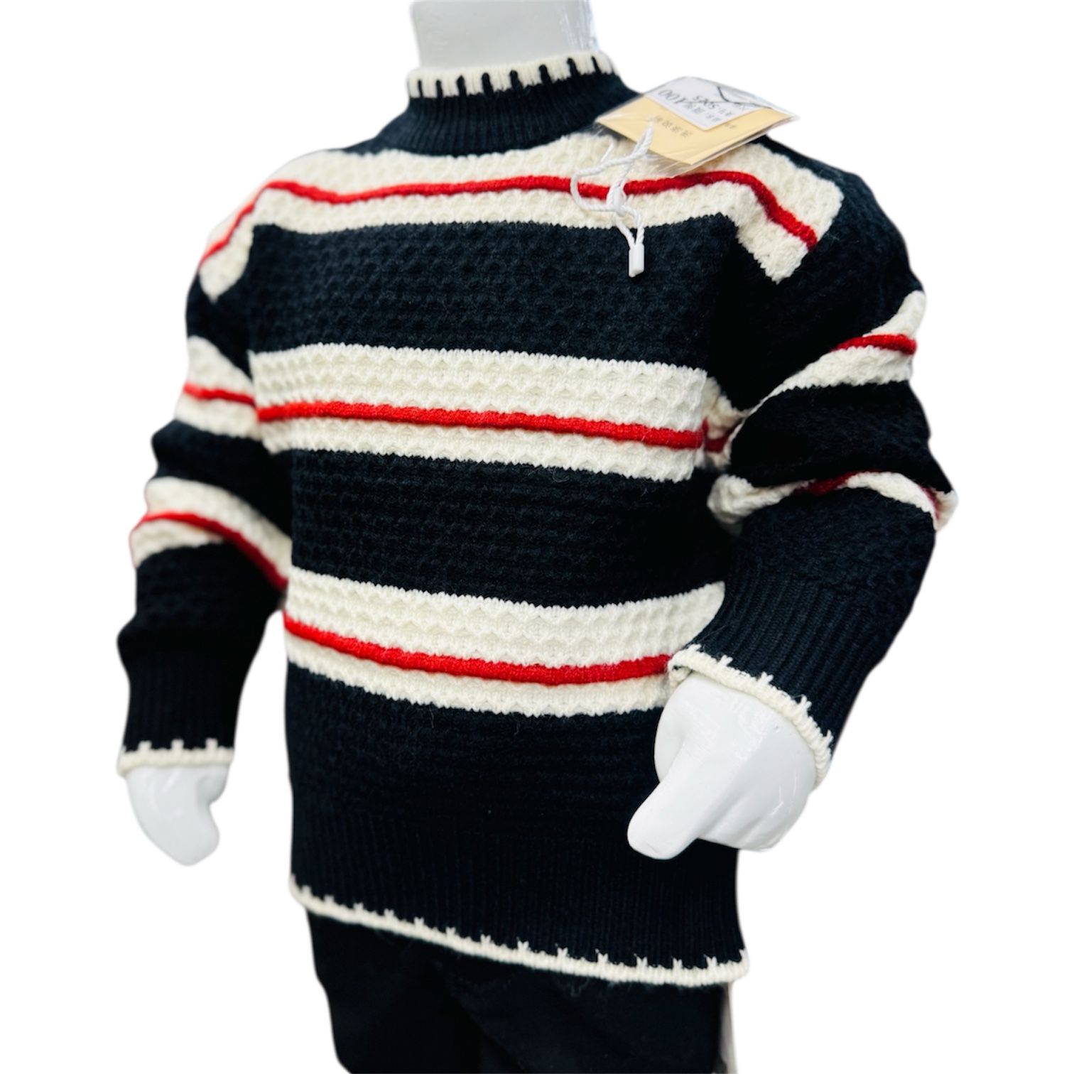 A cozy and stylish boys winter sweater and trouser set featuring a classic striped knit design, perfect for everyday winter wear.