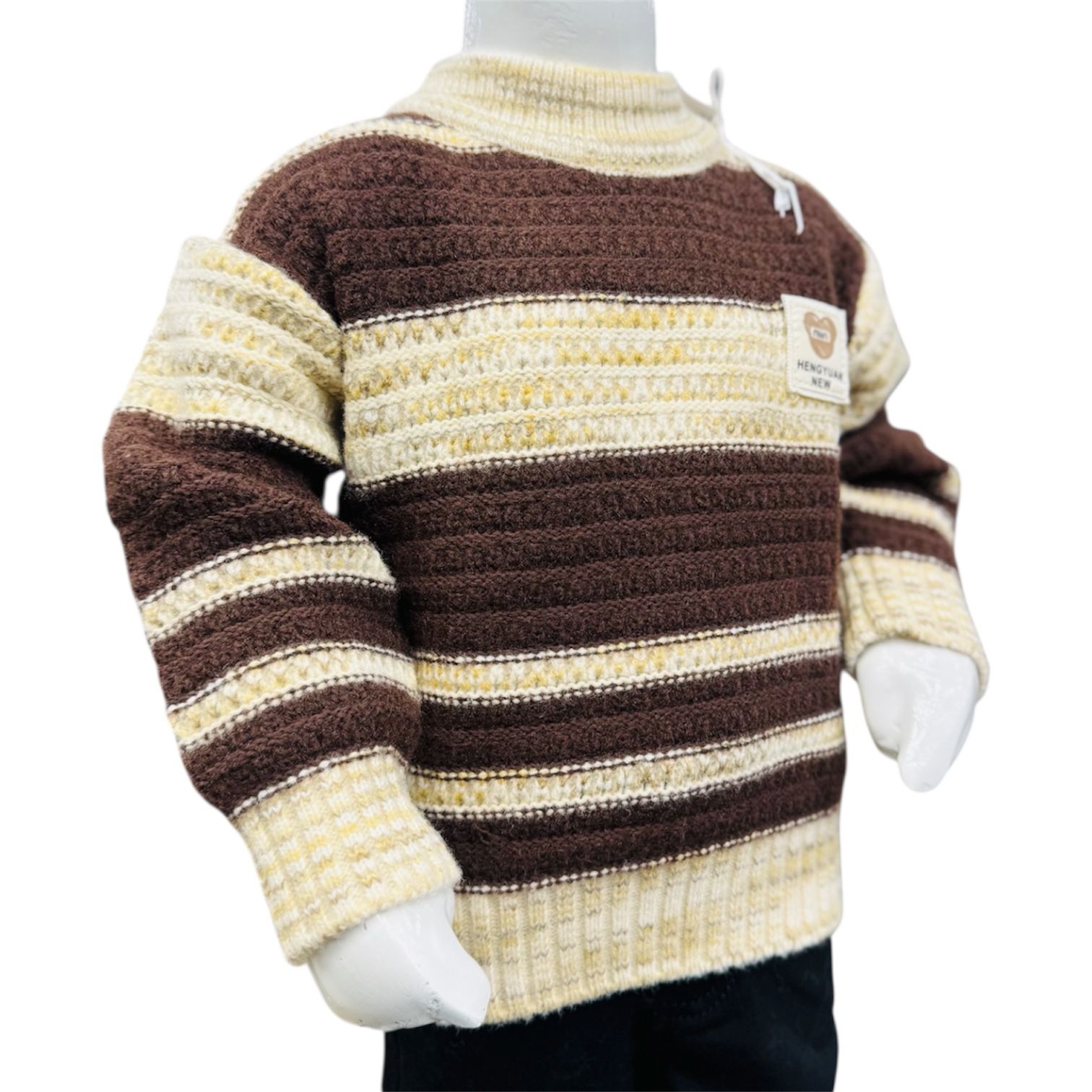 Keep your child cozy and fashionable throughout the winter season with our Boys Winter Striped Knitted Sweater & Trouser Set. Designed for warmth and comfort, this winter outfit features a premium knitted sweater in a classic brown and cream striped pattern that adds a timeless and stylish look.