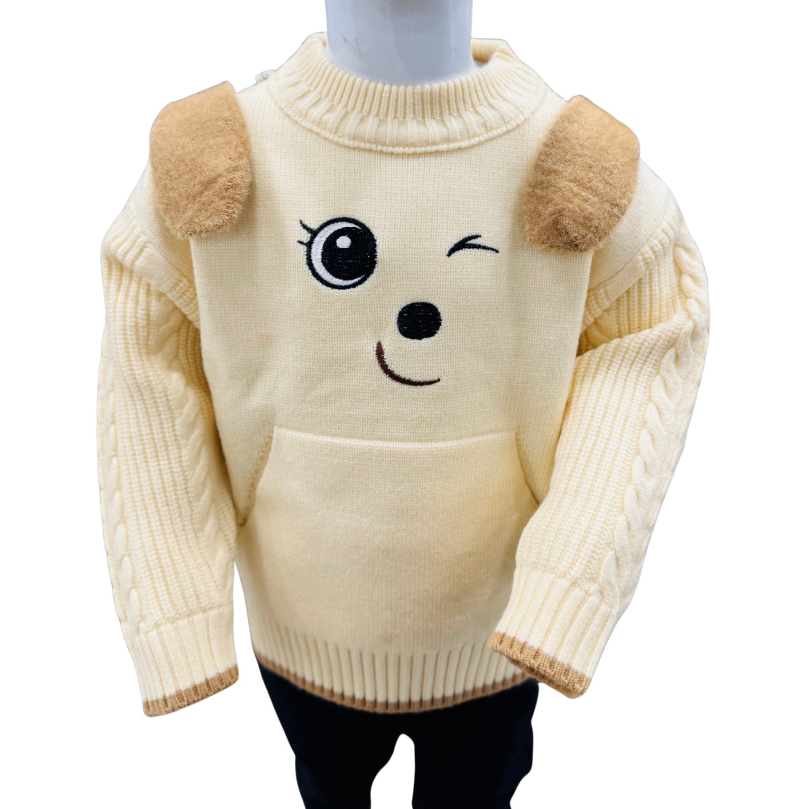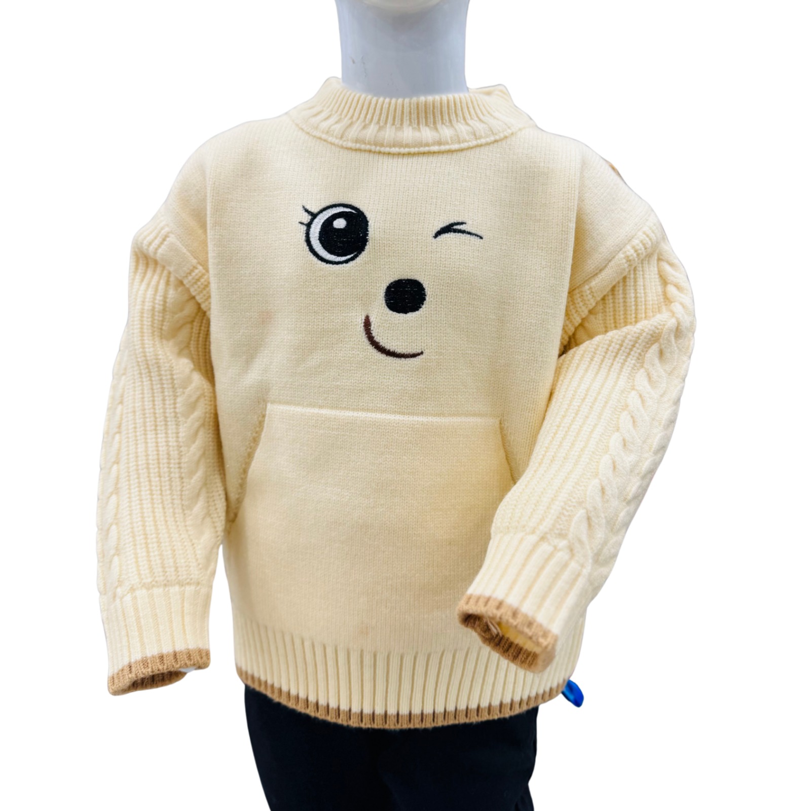 This kids winter sweater is designed to keep your little one warm while looking super cute. Made from high-quality knit fabric, it features a charming smiley face print on the front that kids love. The full sleeves and ribbed cuffs provide extra warmth, making it ideal for cold weather. Perfect for casual outings, school wear, or daily winter use.