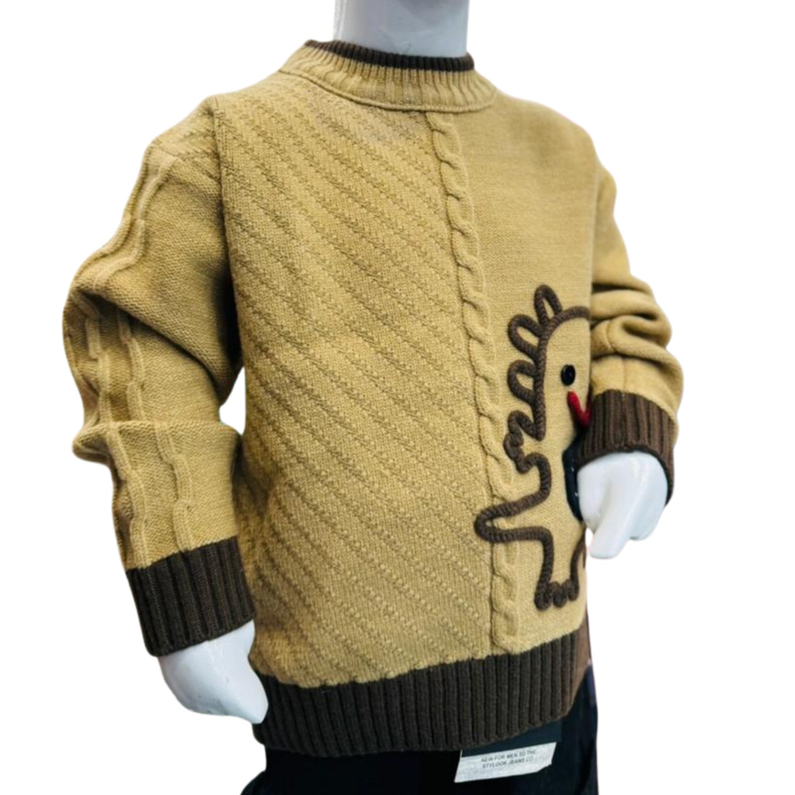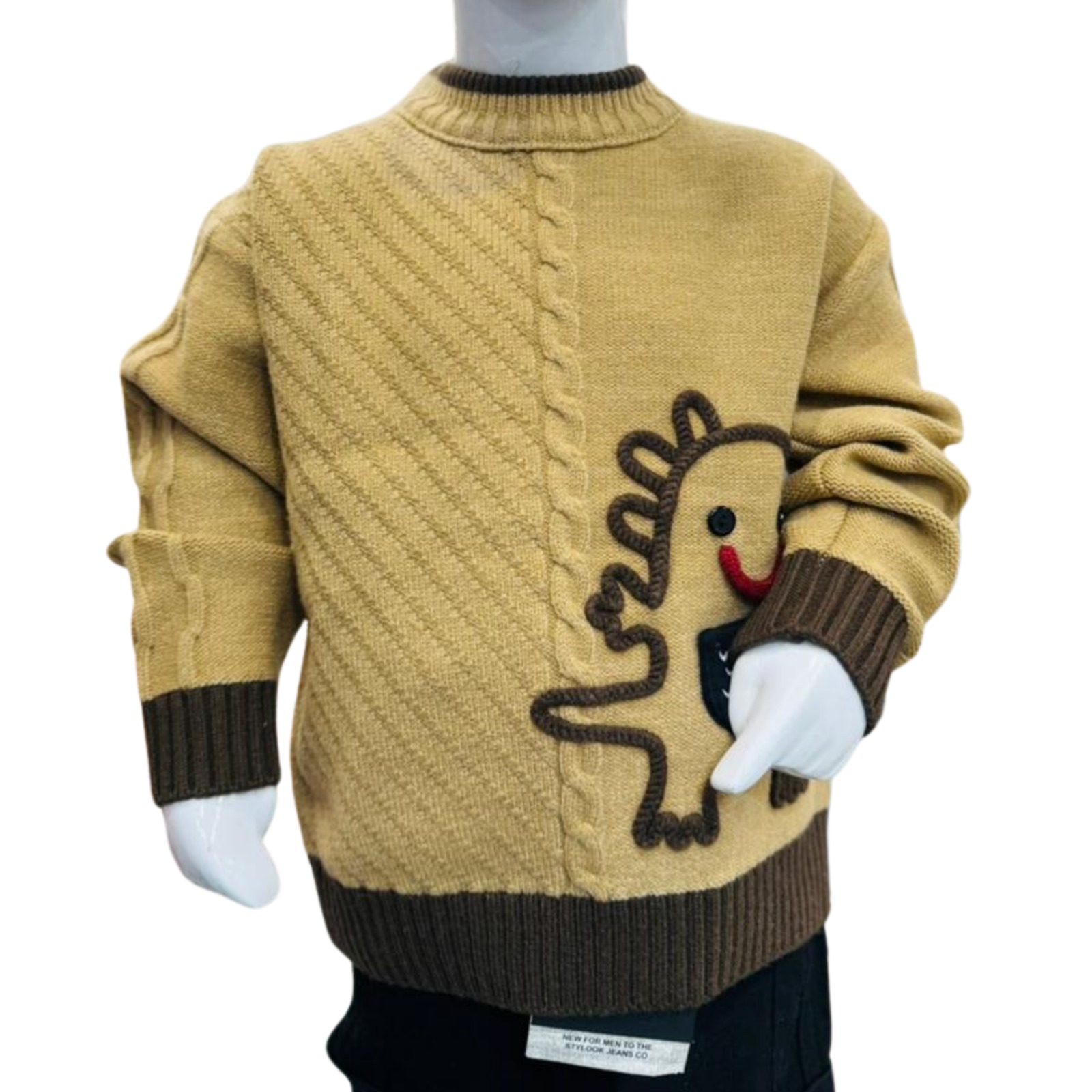 The brown knitted sweater features a cute hedgehog cartoon applique on the front with textured knit detailing, giving it a unique and stylish look. Ribbed cuffs, neckline, and hem ensure a snug fit and help keep the cold out.