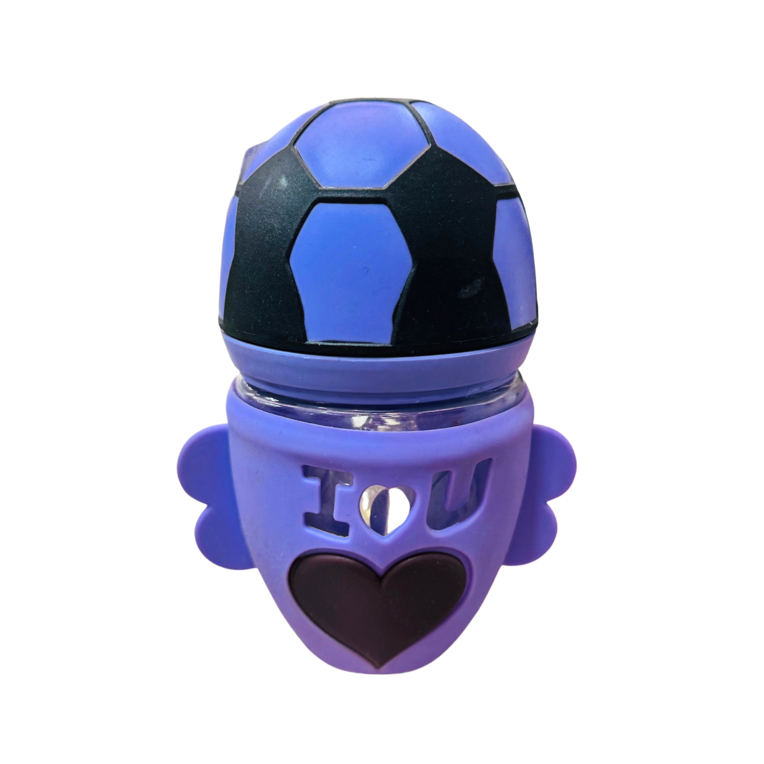 Cute and stylish kids sipper bottle with football-shaped cap and “I ♥ U” design. Leak-proof, lightweight, and perfect for school, travel, and daily use.